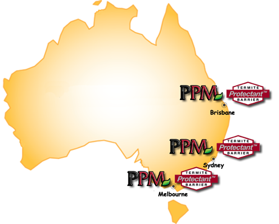 Click on the map above for more detailed information on our pest control or termite barriers services in Brisbane, Sydney or Melbourne.
